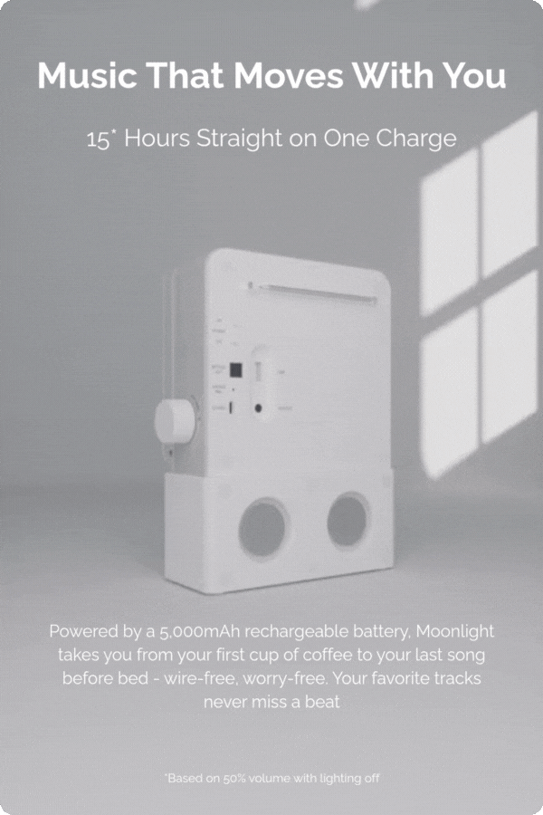 With custom dual speakers, dual bass radiators, and a sealed acoustic chamber, Moonlight delivers deep lows, crisp highs, and a rich, balanced sound. Bold when you want it, gentle when you need it